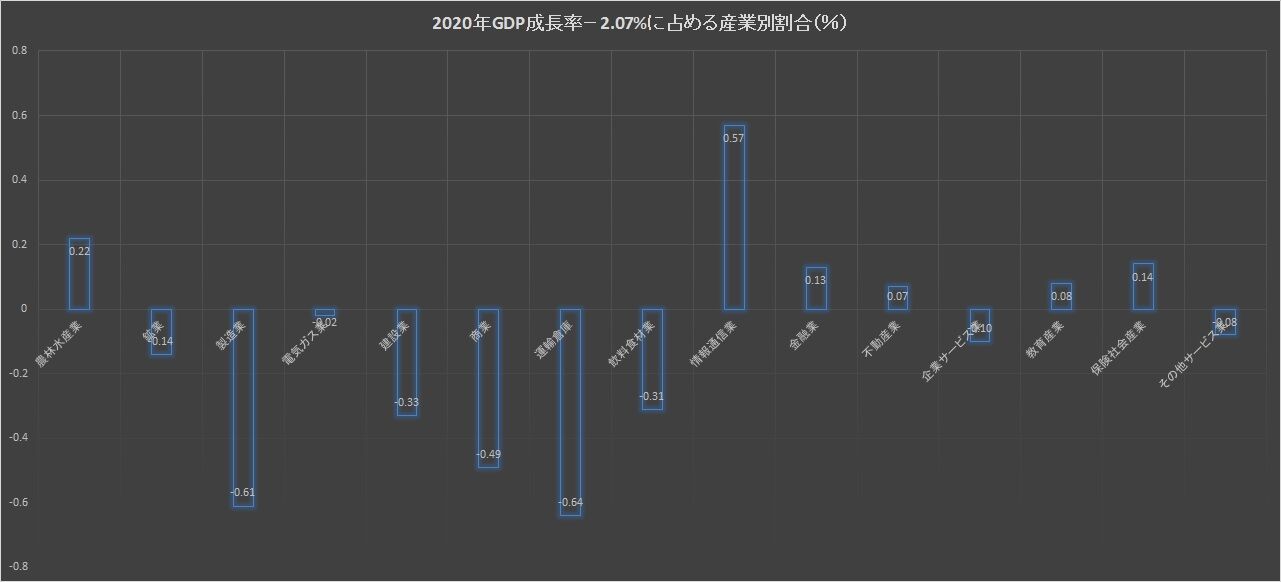 2020年GDP成長率-2.07%に占める産業別内訳