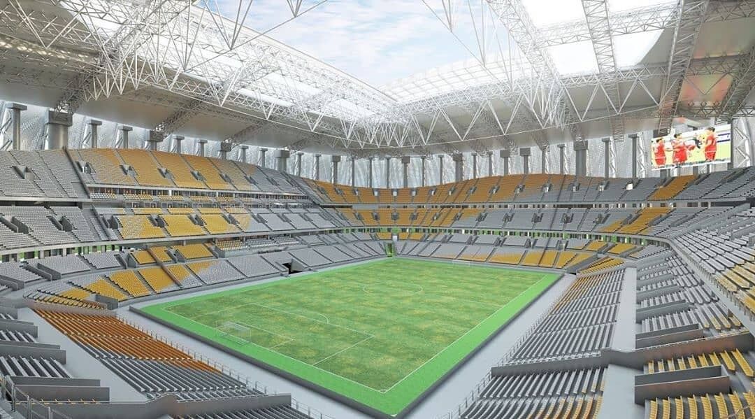 完成間際の様子を見るとサッカーのピッチが全体を占めており、陸上競技のトラックが見当たらないのでサッカー競技専用のスタジアムなのでしょう。