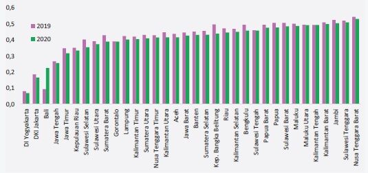 インドネシアの州別では図の様にジョクジャカルタが0.069とシンガポール並で、最も平等とされています。